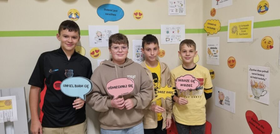 Z tej okazji uczniowie wszystkich klas wykonali podczas zajęć z wychowawcą Drzewka Zadaniowe. Każdy uczeń wylosował „życzliwe” zadanie i chętnie je zrealizował. W tym dniu posłańcy życzliwości dostarczyli kartki z pozdrowieniami i życzeniami. Na przerwach bawiliśmy się w sali gimnastycznej, gdzie uczennice klasy VIII b z panią Ewą Kurpis poprowadziły taneczną zabawę. Rozwiązywaliśmy też zagadki i mogliśmy sobie zrobić zdjęcie
